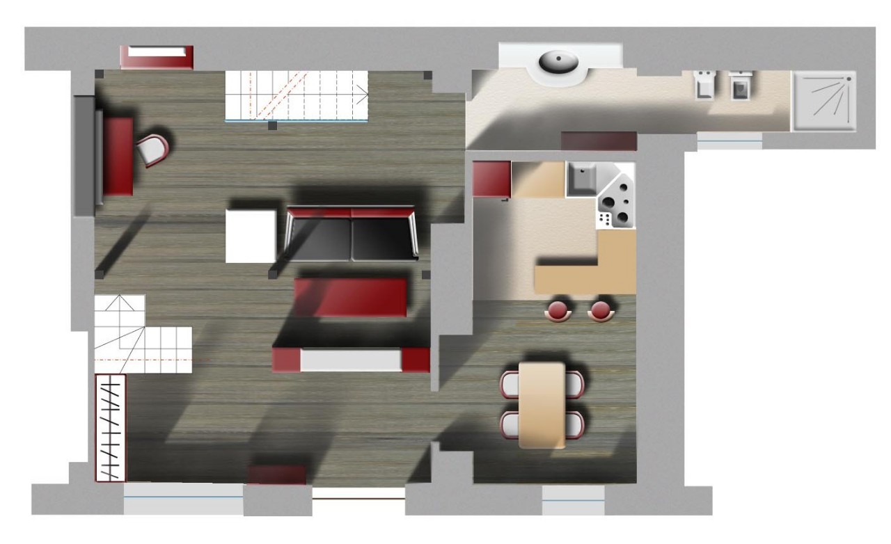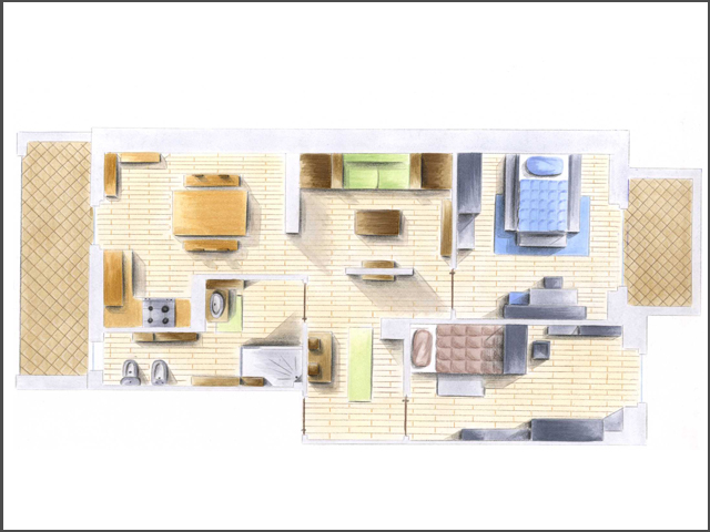 pianta appartamento sudenti, colorazione a Pantoni
