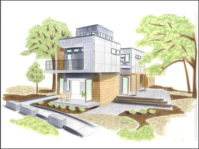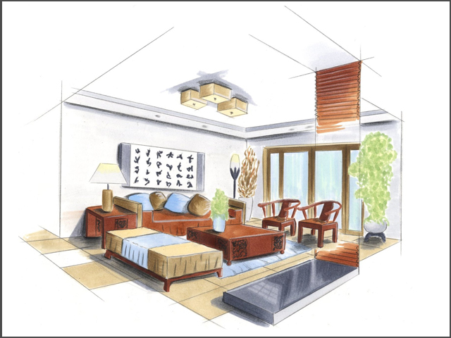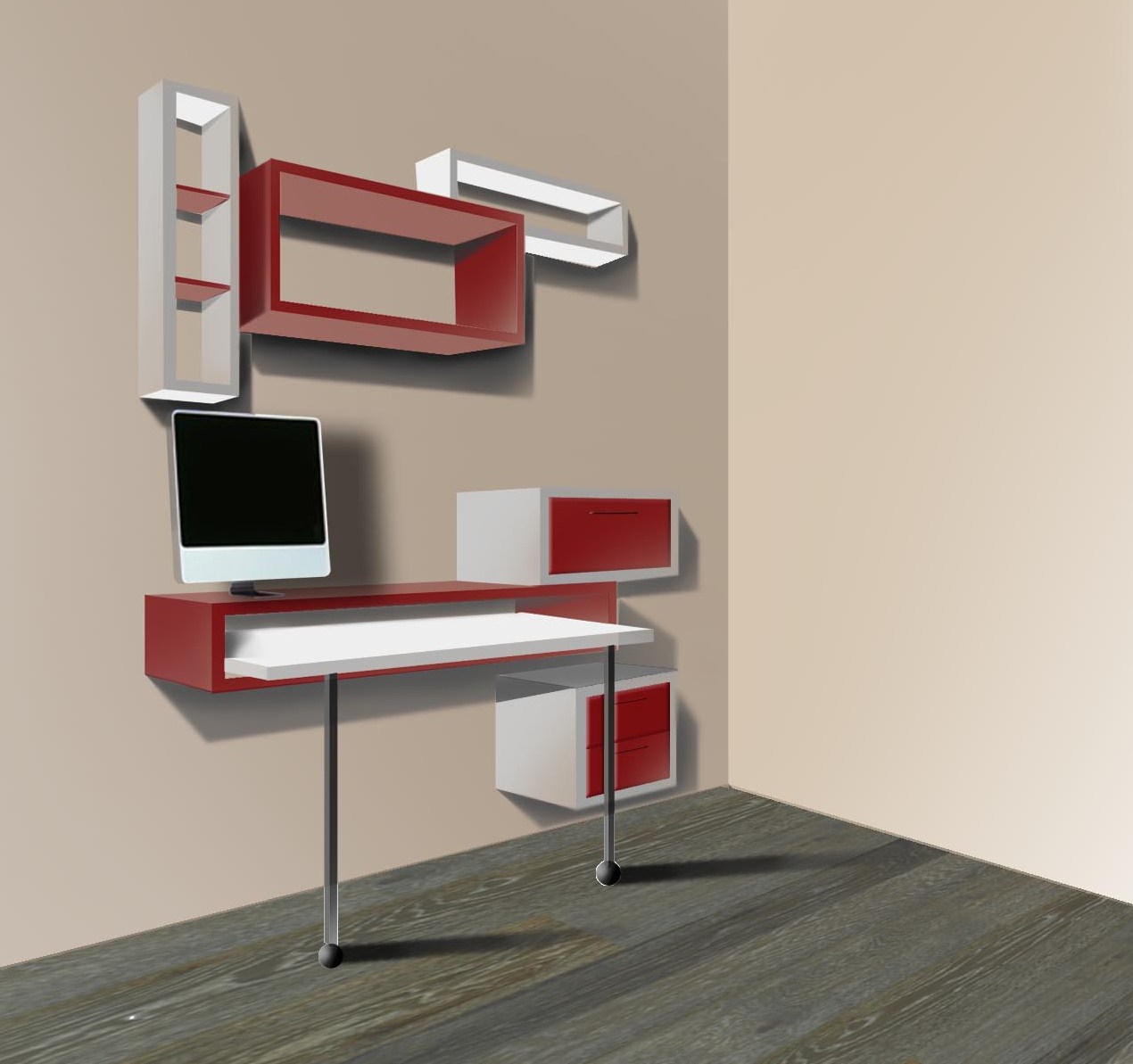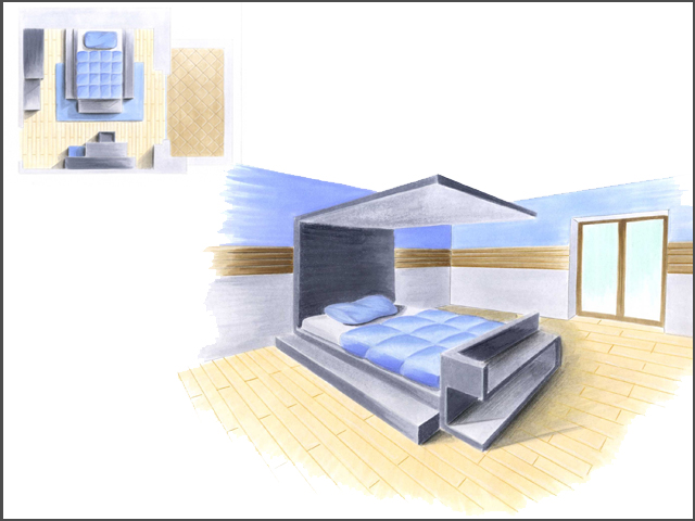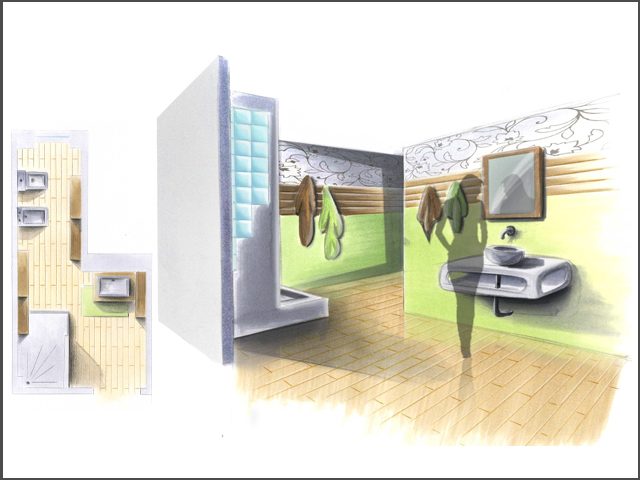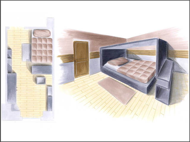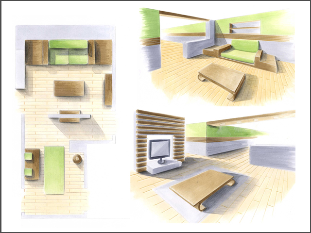 ristrutturazione piano giorno, progettazione angolo scrivnia (disegno e colorazione a Photoshop)