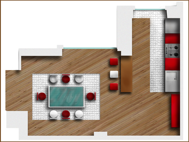 ristrutturazione piano giorno, pianta con colorazione a Photoshop